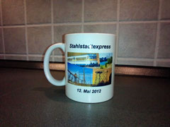 Die Henkeltasse bedruckt zu unseren Sonderfahrten Stahlstadtexpress.